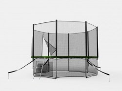 - Комплектация: батут, защитный мат, защитная сеть, защитная сеть нижняя, лестница, защитный чехол прыжкового мата, фиксаторы батута.