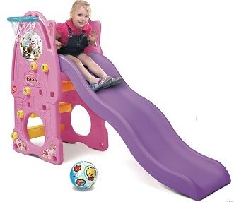 - Детская горка в комплекте с баскетбольной корзиной и мячом;