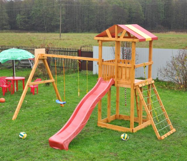 - навесное оборудование: веревочная лестница, кольца, качели, канат;