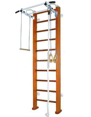 - Комплектация: шведская стенка, турник, канат, кольца пластиковые, трапеция.